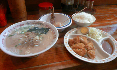 拉麺、飯椀に、烏賊天の取り合わせ、いと可笑しきなり。何故に烏賊天なりかと、また一人自問自答す。