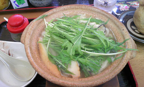 品書きを見るまでもなく、「鯨鍋饂飩」を注文す。なんせ「鯨本皮使用はりはり水菜鍋」なり。「おなごによろし、個羅亜源-一杯」なり。そしてなにより「冬期限定」なり。